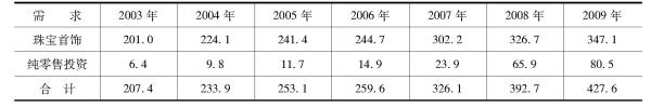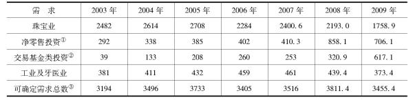 表7 2003~2009年中国内地实物黄金需求状况单位:吨(金属量)