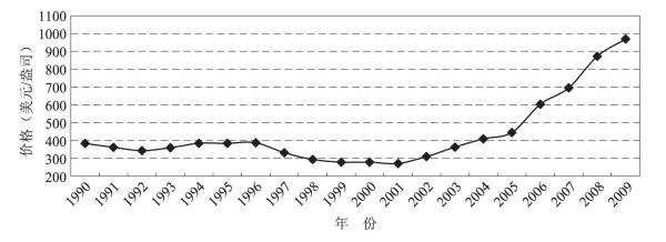 图4 1990~2009年英国伦敦黄金交易价格变化
