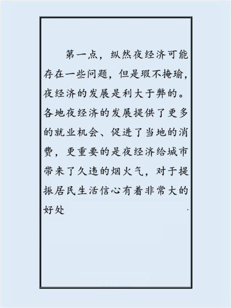 第一点,纵然夜经济可能存在一些问题,但是瑕不掩瑜夜经济的发展是利大于弊的。各地夜经济的发展提供了更多的就业机会、促进了当地的消费,更重要的是夜经济给城市带来了久违的烟火气,对于提振居民生活信心有着非常大的好处。