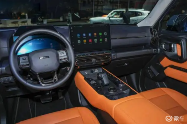 车辆内部采用了全新的设计风格,中控台采用了大量皮质面料包裹,副驾驶前方依旧配有越野扶手。中控屏尺寸也进一步增加,且显示效果更为出众。此外,新车挡把造型也类似于坦克 300,看上去更加硬朗。