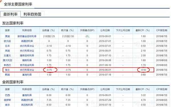 比如我国一年期基准利率为1.5%,而7月份的CPI为2.8%,实际利率=1.5%-2.8%=-1.3%;而瑞士央行利率决议为-0.75%,但是CPI为-0.5%,实际利率=-0.75%+0.5%=-0.25%。