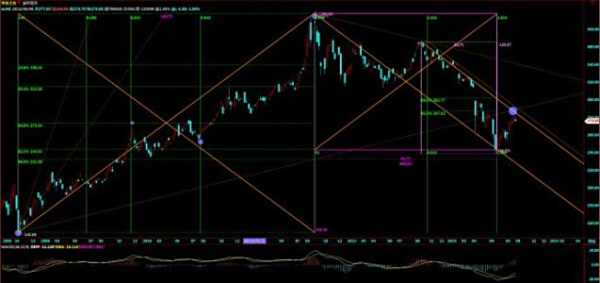2、下降趋势的波动率计算方法是:在下降趋势中,顶部与顶部的距离除以顶部与顶部的相隔时间,取整。并用它们作为坐标刻度在纸上绘制。