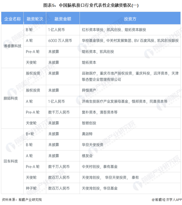 从投融资情况来看,截至2022年11月,回车科技的融资事件数量最多,达到了6件;脑陆科技、柔电芯云和博睿康科技融资事件数量紧随其后,分别为5件、4件和4件,而其他企业融资事件数量均在4件以下。但从融资金额来看,公开资料显示强脑科技是全球除Nerualink外唯一一家融资金额超过2亿美元的脑机接口企业,与其他脑机接口企业相比资金优势较大。