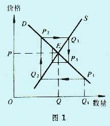 图中P、Q、D、S、分别是价格、产量、需求函数和供给函数;t为时间。根据上述模型, 第一时期的价格P1由供给量Q1来决定;生产者按这个价格来决定他们在第二时期的产量Q2。Q2又决定了第二时期的价格P2。第三时期的产量Q3,由第二时期的价格P2来决定,依此类推。由于需求弹性、供给弹性不同,价格和供给量的变化可分三种情况: