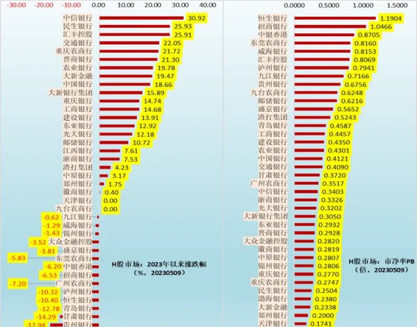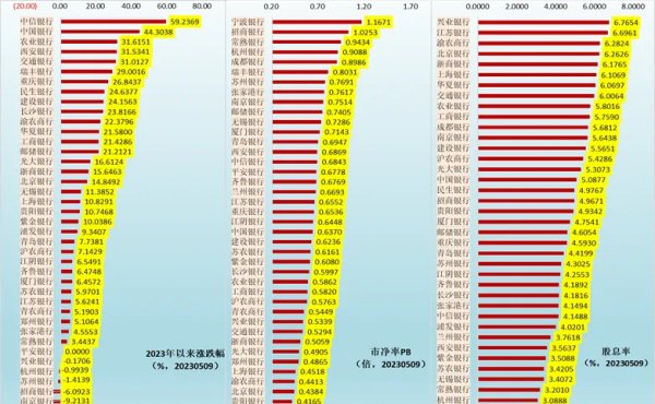 2、不过仍然需要认识到,“中特股”概念并非是推动银行有亮眼表现的唯一因素。这主要是因为,今年以来瑞丰银行、民生银行、长沙银行、重庆银行、重庆农商行等不是“中特估指数”权重股的几家银行股价表现同样也不错,而其它一些非“中特估指数”权重股的券商和保险股表现亦也不错。