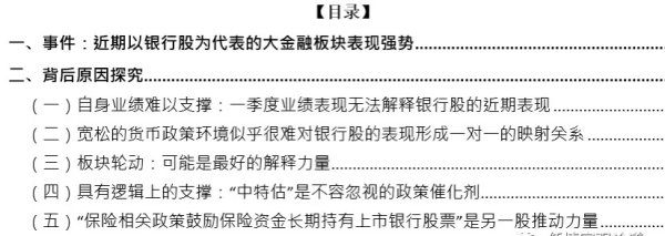 一、事件:近期以银行股为代表的大金融板块表现强势