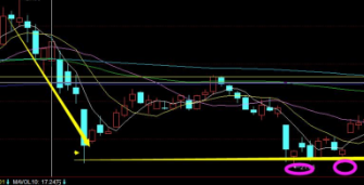 短期底部形成的话一般都是V型反转,技术指标超卖之后出现反弹转折点,但是这种情况对操作能力考验很多。没有出现反弹的时候是不能进场的,因为下跌过程持续的可能性是很大的;然而出现反弹之后还需要考虑上方还有多少上涨空间,当天买入会不会下午冲高回落隔天无法获利甚至下跌不得不割肉。