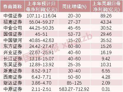 部分券商半年报预告数据