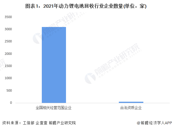 注:数据截止日期为2022年1月12日。全国相关经验范围企业指全国在业/存续企业中经验范围包含动力电池回收的注册资本2000万元以上企业。合法资质企业指工信部发布“新能源汽车废旧动力蓄电池综合利用行业规范条件”企业名录公示企业,拥有梯次利用和再生利用资质。