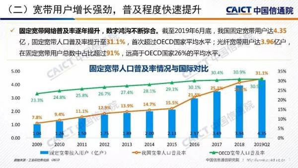 中国研究院于2019年发布的《中国宽带发展白皮书》中显示,我国固定宽带用户达4.35亿,我国基础电信企业陆续启动了G.654.E干线光缆的采集。2019年推动基础电信企业在超过300个城市部署千兆宽带网络的接入,千兆网络覆盖的范围达到了2000万个家庭。