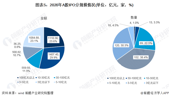 2021年以来,A股IPO融资金额已经达到429.60亿元,数量达到56家。前瞻产业研究院初步估计,2021年,A股IPO市场登陆企业或在440-520家左右,其融资总额或在4100-5200亿元之间。