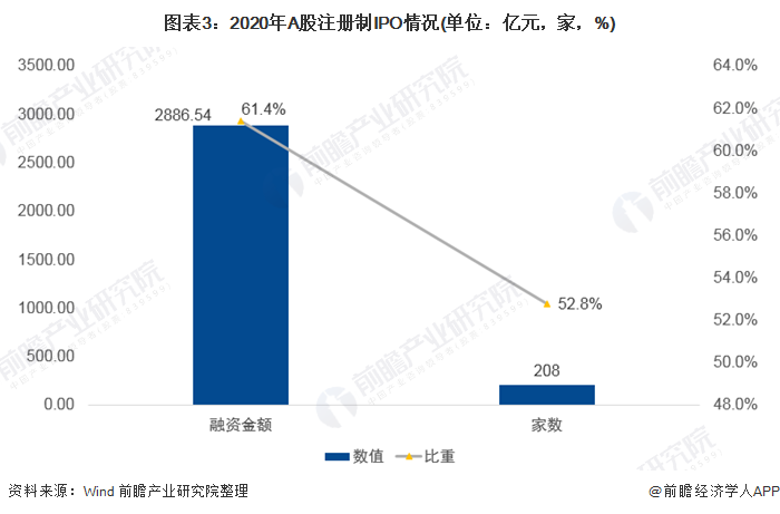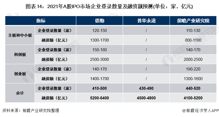 前瞻产业研究院初步估计,2021年,A股IPO市场登陆企业或在440-520家左右,其融资总额或在4100-5200亿元之间。