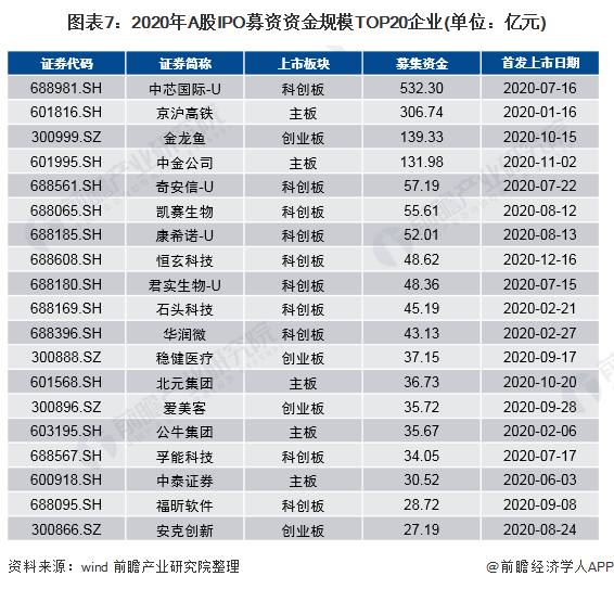 2020年前十大IPO中有7家来自科创板