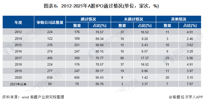 wind数据显示,2020年,A股IPO审核公司总数量达到634家次,其中通过数量为605家次,通过率达到95.43%,均创下近年来新高;未通过数量为9家次,未通过率为1.42%,均创下近年来新低。