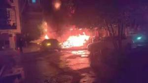 在河北石家庄一小区内,凌晨的时候突然燃起火光,现场可以清楚地看见起火的地点停着很多车辆。据悉起火的原因是因为一住户,私拉电线引发的火灾。
