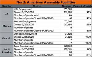 随着疫情对海外车企影响的加剧,已经停产接近半个月的海外汽车制造工厂到目前仍未达到复工条件。北美地区的69座整车厂已有55座暂时关闭停产,关闭比例达到80%;欧洲则更加严重,仅大众集团一家车企在欧洲就关停了72座工厂,复工时间也在不断推后。