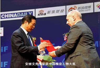 “投资徐州﹒风云人物”大奖获得者淮海车辆集团董事长兼总经理、江苏宗申公司总经理安继文先生,历任徐州市人大代表、徐州市工商联副理事长。先后被授予“徐州市首届十大杰出青年”、“徐州市十大杰出青年企业家”、“徐州市优秀企业家”、“江苏省明星企业家”、“江苏省乡镇企业科技进步一等奖”等荣誉。