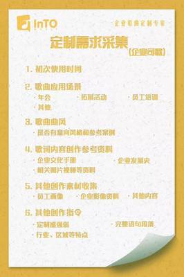 根据我们在企业司歌定制的相关经验,我们制作了一份标准的信息采集图(下图一)。使我们在企业司歌创作的非标化过程中,尽可能的提取标准信息,优化沟通成本。