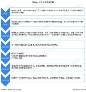 语音识别的研究工作可以追溯到20世纪50年代。在1952年,AT&T贝尔研究所的Davis,Biddulph和Balashek研究成功了世界上第一个语音识别系统Audry系统,可以识别10个英文数字发音。这个系统识别的是一个人说出的孤立数字,并且很大程度上依赖于每个数字中的元音的共振峰的测量。1956年,在RCA实验室,Olson和Belar研制了可以识别一个说话人的10个单音节的系统,它同样依赖于元音带的谱的测量。到21世纪之后,深度学习技术极大的促进了语音识别技术的进步,识别精度大大提高,应用得到广泛发展。