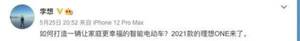 去年5月,李想在社交平台发文:如何打造一辆让家庭更幸福的智能电动车?2021款理想ONE来了。