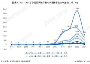 趋势方面,2011-2016年期间,各省市间区块链专利申请量差距不大,2016-2017年,北京区块链专利申请数量位列第一,2018年被广东反超,此后,广东一直位居榜首。四川、湖北、陕西和福建在2011-2020年的区块链专利申请量差距不大。