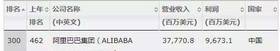 而阿里巴巴只排在第300位置,预计2019年能排进前200名。