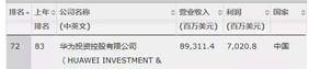 根据2018年福布斯公布的世界500强来看,华为位居72位挤进了世界前100强。
