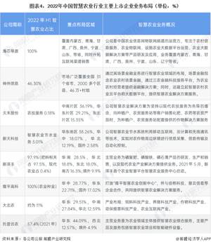 从公司业务布局来看,智慧农业所涉及的细分领域较多,行业上市企业在业务布局方面各有重点,可根据不同的市场需求提供不同的产品或服务。其中,海芯华夏等企业智慧农业占比较高,达100%;区域布局方面,智慧农业行业上市企业主要在国内开展业务,部分企业在境外也有业务,但业务占比较小。