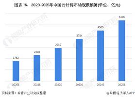 根据中国信通院数据预测,我国公有云市场2020-2022年仍将处于快速增长阶段,私有云未来几年将保持稳定增长。据此,前瞻预计2020年我国云计算整体市场规模将达到1782亿元左右,到2025年市场规模有望突破5400亿元。