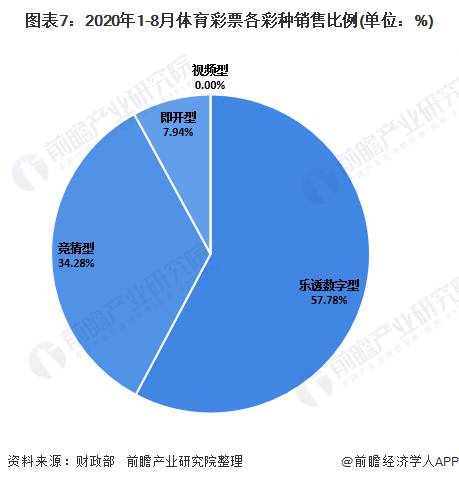 2020年1-8月,体育彩票销量占比最高的是乐透数字型,占比达到57.78%。