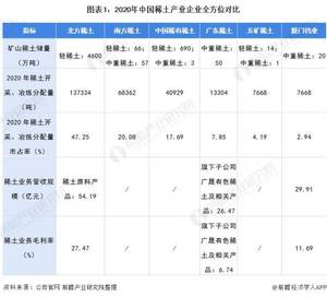 1、中国稀土产业企业全方位对比:北方稀土是“稀土之王”