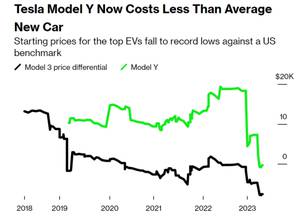 特斯拉Model 3和Model Y的价格降至历史最低;图片来源:彭博社
