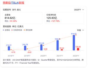 诚然,特斯拉的高毛利率在行业内屈指可数。特斯拉2022年全年财报显示,其全年的营收为814.62亿美元,同比增长51%;毛利润为208.53亿美元,同比增长53%;毛利率为25.6%。