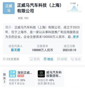 2023年3月15日,威马汽车与深圳正威能源控股有限公司成立合资子公司——正威马汽车科技(上海)有限公司。该公司注册资本为10亿元。