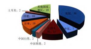 图5 2010年各国钻石首饰销售市场份额(百分比)