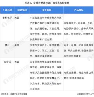 从全球连接器厂商竞争领域来看,TE Connectivity(泰科电子)、Molex(莫仕)、Amphenol(安费诺)这三家美国大型厂商在各个细分领域排名均靠前,泰科、安费诺和莫仕,三家厂商的市场份额约占全球总体份额的30%以上。