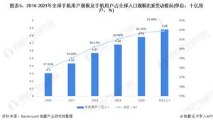 根据Bankmycell统计数据显示,2016-2021年全球手机用户总规模呈现稳定的逐年上升趋势,每年增长率基本保持在2%以上,2020年全球手机用户为47.8亿用户,同比上升2.14%,占全球人口的61.65%,2021年1-7月为48.8亿用户,占全球人口的61.88%。