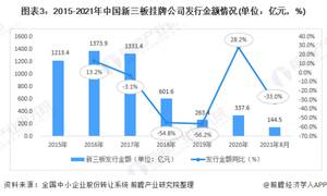 2021年截止8月,新三板发行金额144.5万亿元,同比上年下降33.05%,挂牌家数7369家,同比下降12.8%。