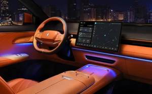 打开拉风的无框车门来到车内,我们可以发现深蓝S7在内饰设计方面也颇为用心,其中该车车内线条以平直为主,触手可及的区域基本采用软性皮质面料包裹,质感出众,各功能区域划分明确,大色块的布局以及鲜明的配色让座舱显得颇为时尚。