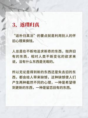 “返朴归真法”的要点就是利用别人的怀旧心理来换钱。