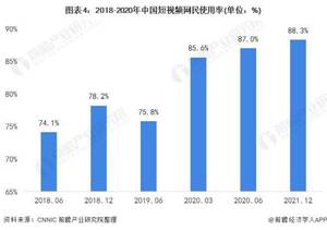 并且,近年来短视频网民使用率持续提升。截止2020年底,短视频网民使用率达到了88.3%。