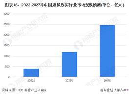 作为新一代信息技术融合创新的典型领域,虚拟现实(VR)关键技术日渐成熟,在大众消费和垂直行业中应用前景广阔,产业发展空间巨大。根据IDC发布的2022年V1版IDC《全球增强与虚拟现实支出指南》,中国市场未来五年CAGR预计将达43.8%,增速位列全球第一,据此预计到2027年中国虚拟现实(VR)行业市场规模或达到2466亿元。