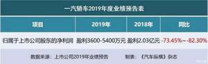 ?一汽轿车:2019年净利润预计盈利3600-5400万元,下降73.45%-82.30%