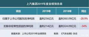 ?上汽集团:2019年净利润预计盈利256亿元,下降28.9%