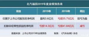 ?北汽福田:2019年净利润预计盈利3.6亿元,扭亏为盈