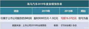 ?海马汽车:2019年净利润预计盈利9000万元-1.3亿元,扭亏为盈