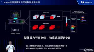 其次,MANA感知能力提升,让海量数据不再被区别对待。面对巨大数据规模下的“数据效率”难题,MANA构建了增量式学习训练平台,抽取部分存量数据加上新数据组合成一个混合数据集。训练时要求新模型和旧模型的输出保持尽量一致,对新数据的拟合尽量好。相比常规做法,整体算力节省80%,响应速度提升6倍。