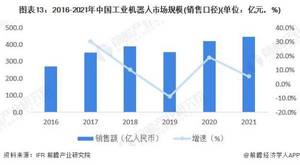 我国工业机器人市场发展较快,约占全球市场份额三分之一,是全球第一大工业机器人应用市场。当前,我国生产制造智能化改造升级的需求日益凸显,工业机器人的市场需求依然旺盛,据IFR统计,2020年我国工业机器人销量额达442.5亿人民币,2021年销量额达到445.7亿人民币,同比增长5.5%。