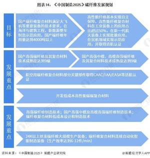 国家政策作为产业发展的催化剂,近年来,国家持续发布相关政策推动碳纤维健康有序发展。从国家的政策可以看出,国家把碳纤维作为新材料进行推广和应用,持续引导国内碳纤维发展,计划形成若干家家具有国际竞争力的碳纤维大型企业集团及若干创新能力强、特色鲜明、产业链完善的碳纤维及其复合材料产业集聚区。未来随政策的支持,我国碳纤维行业相关技术将接近国际水平。