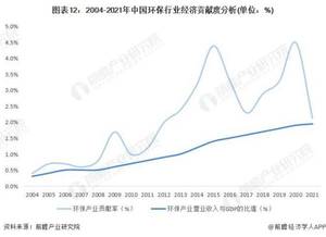 前瞻将2021年中国环保产业营业收入与中国整体GDP进行比较得到2021年环保产业贡献率为2.1%,环保产业与GDP的比值约为1.6%。